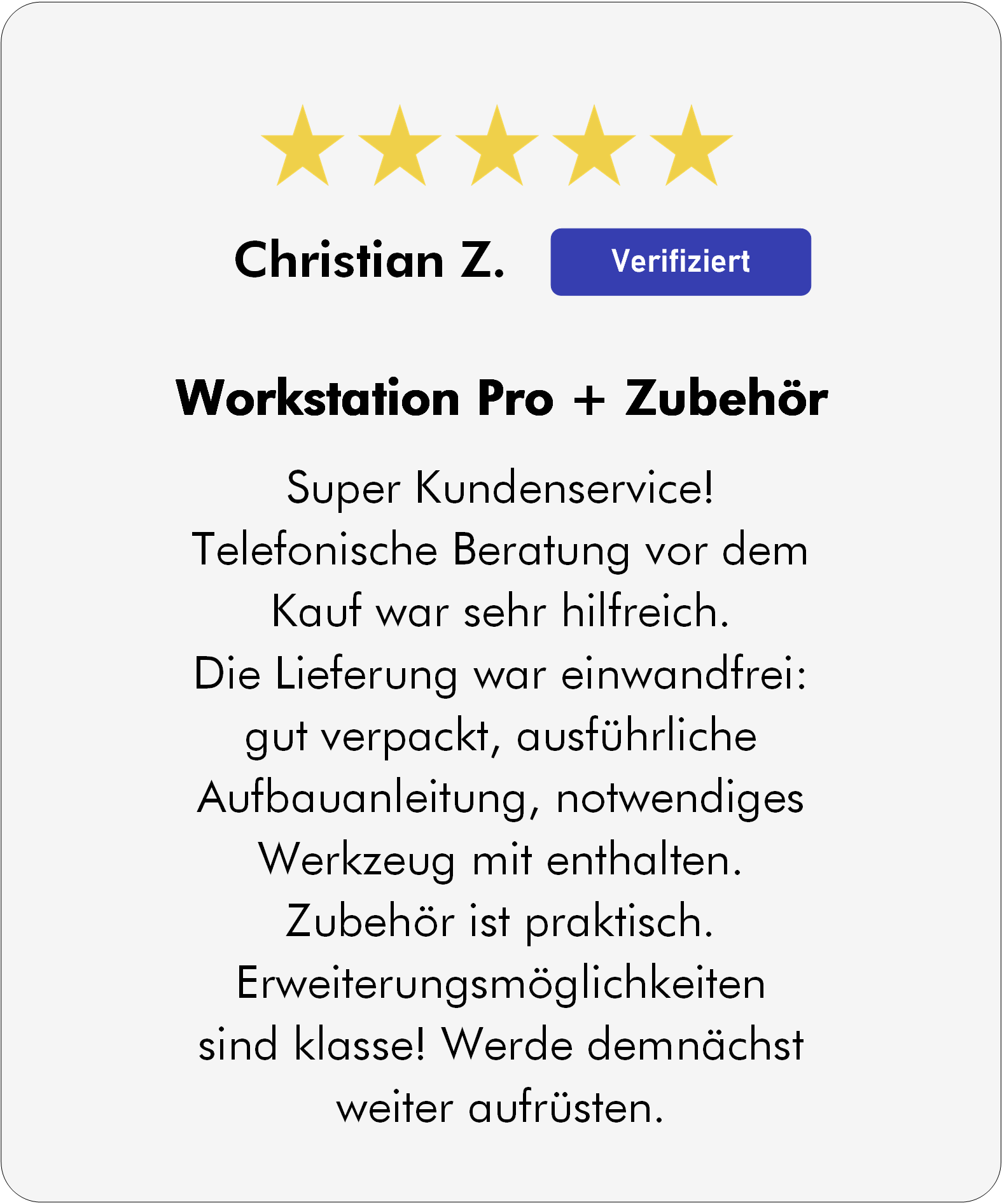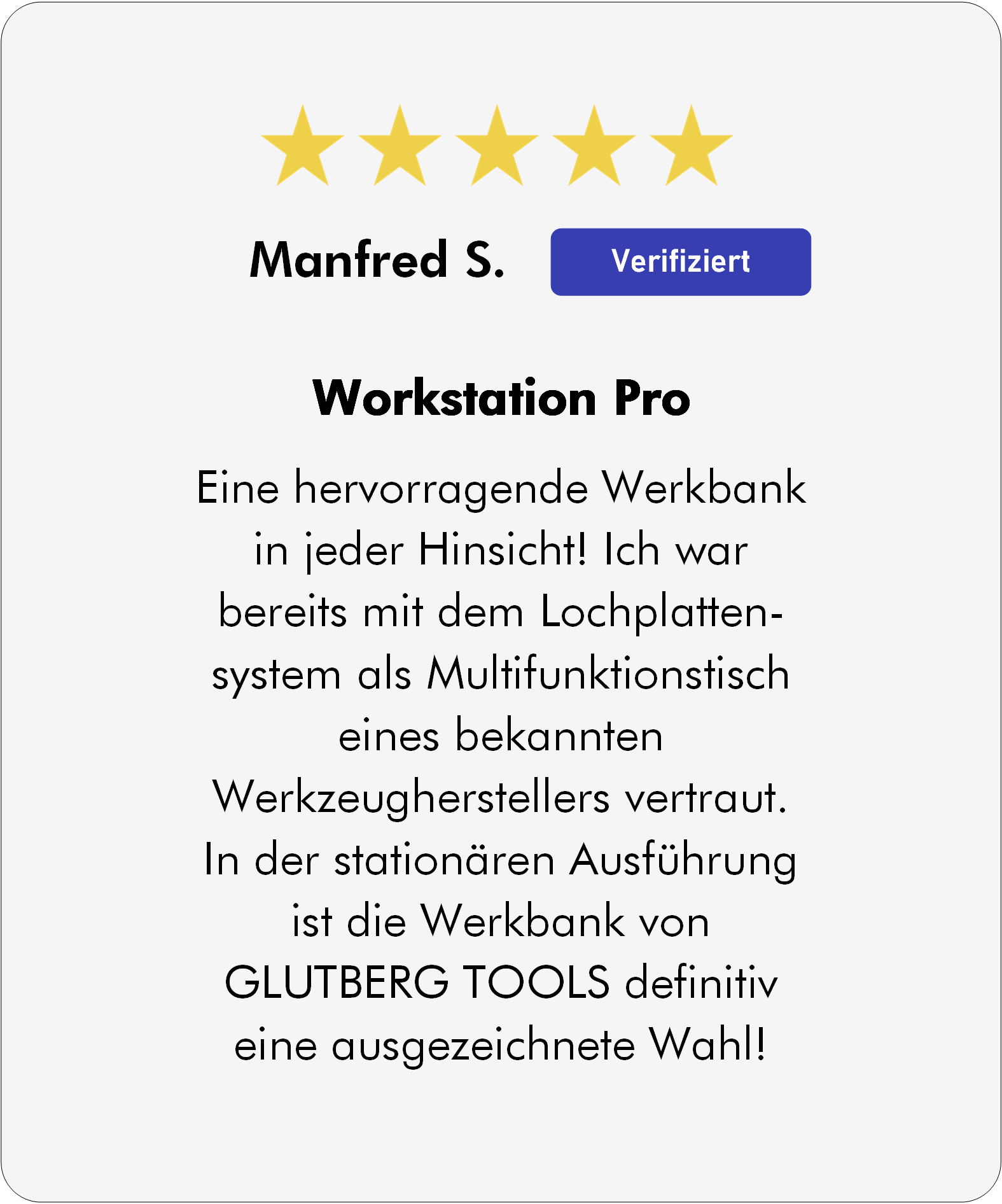 echter Leidenschaft für das Handwerk und einem Anspruch an Produkte, die nicht nur gut, sondern außergewöhnlich gut sind.Das Herzstück unserer Produktpalette ist die Workstation Pro – die perfekte Verbindung aus stabiler Werkbank, flexiblem Multifunktionstisch (MFT) und universellem Arbeitstisch. Dank ihres modularen Aufbaus bietet sie nahezu unbegrenzte Kombinations- und Erweiterungsmöglichkeiten – so spielerisch wie ein Klemmbaustein-Baukasten, aber zugleich so stabil und robust wie die legendäre Werkbank aus Großvaters Werkstatt.